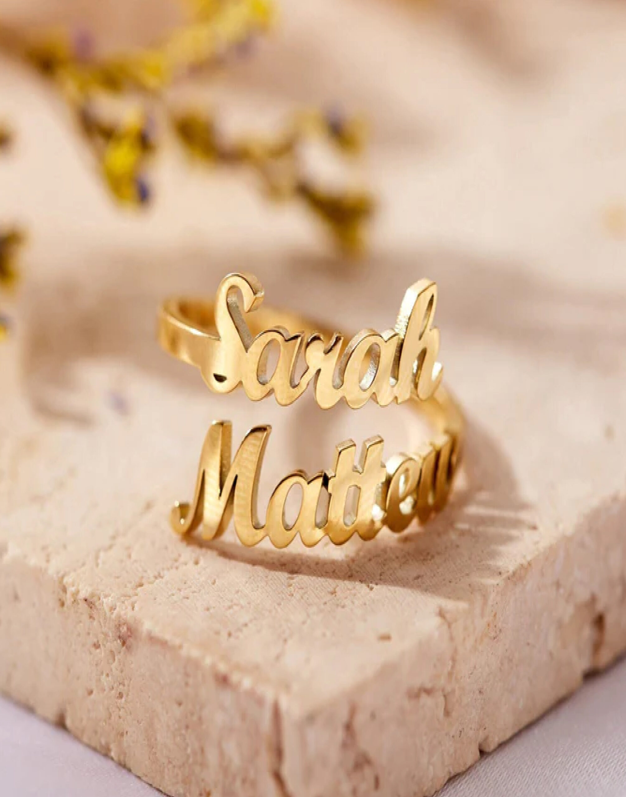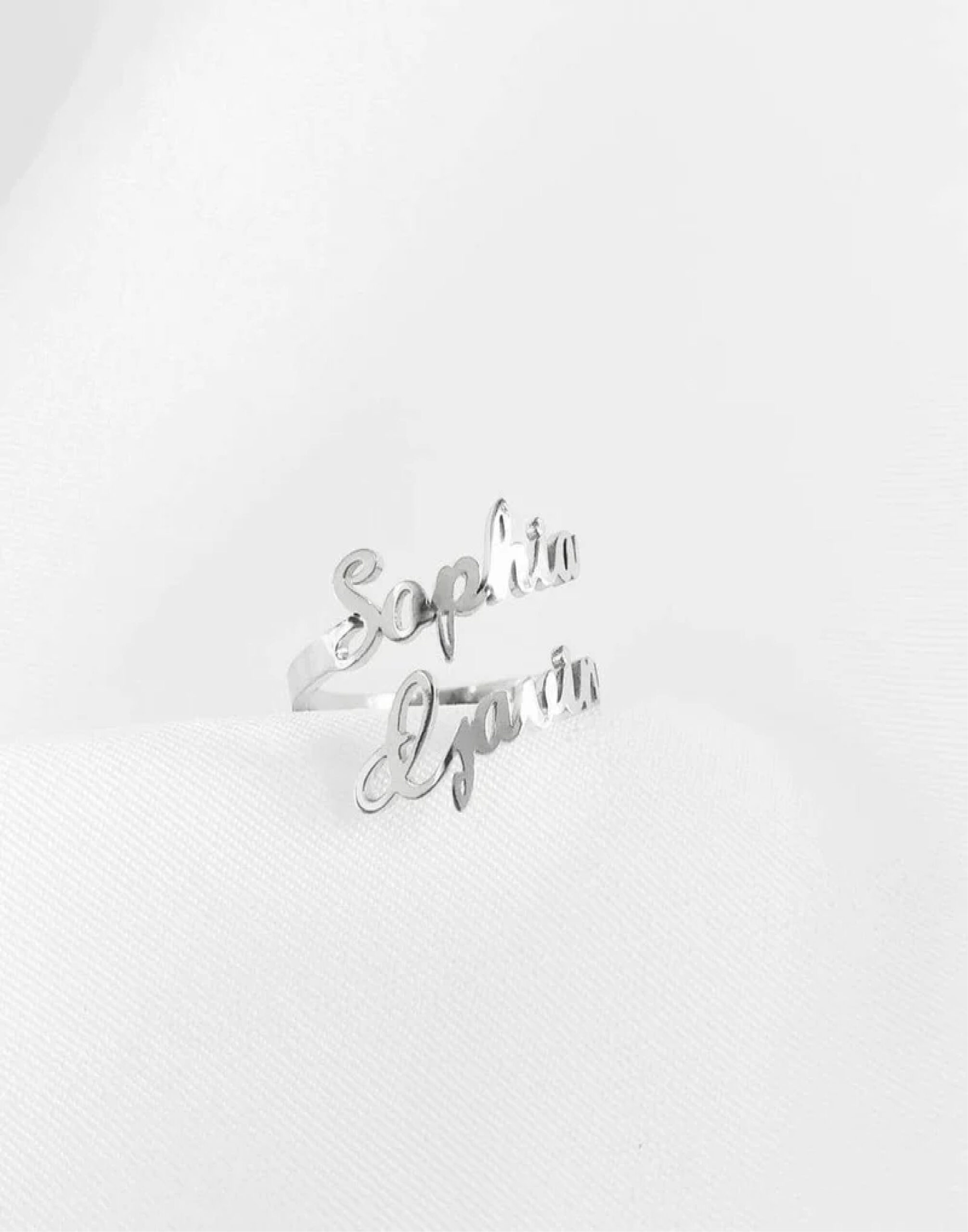 Discover timeless elegance with our Double Name Ring – the perfect best friend gift to symbolize your unbreakable bond. Crafted with precision, this ring allows you to personalize it with two names, creating a unique and meaningful piece that celebrates your friendship. For an equally heartfelt gesture, it’s also an ideal gift for mom, allowing her to carry the names of her loved ones close to her heart.