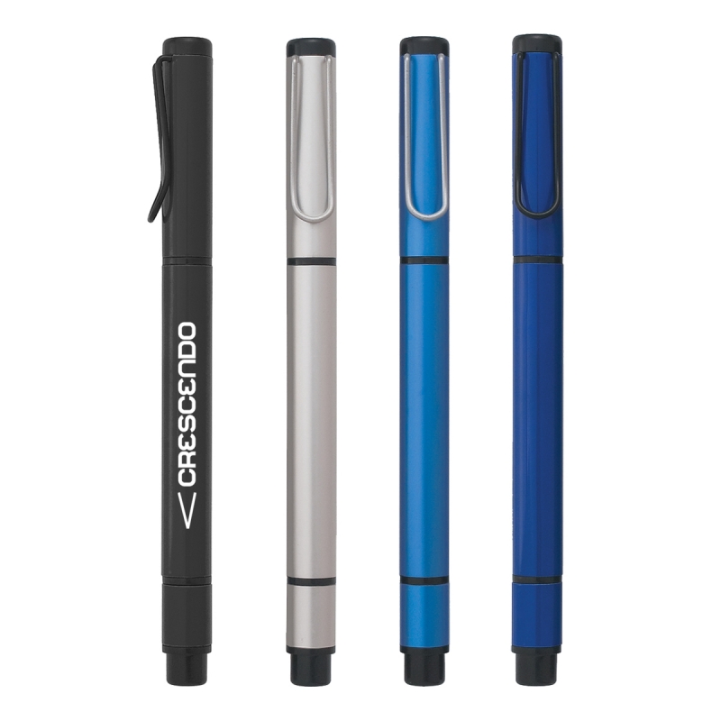 Ballpoint Pen With Black Ink. Aluminum Pen. Chisel Tip Yellow Highlighter.