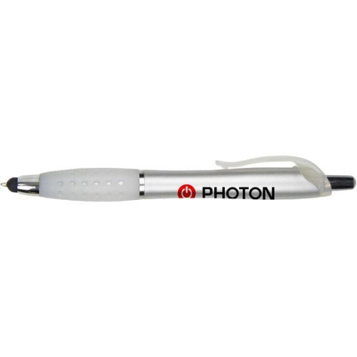 Help your tech-savvy customers and supporters get the most from their favorite electronic devices with this cool and colorful stylus pen! This 5.25″ click-action pen is made of tough ABS plastic with a shapely metallic barrel, stylus tip, chrome accents, super-sized contoured rubber grip and a curved pocket clip.