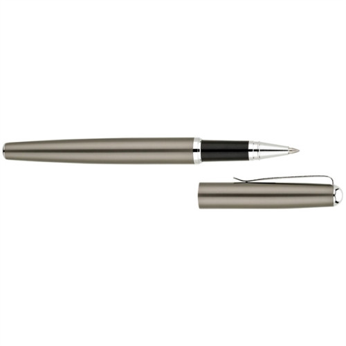 Brass rollerball pen with cap-off design and a split design metal clip.