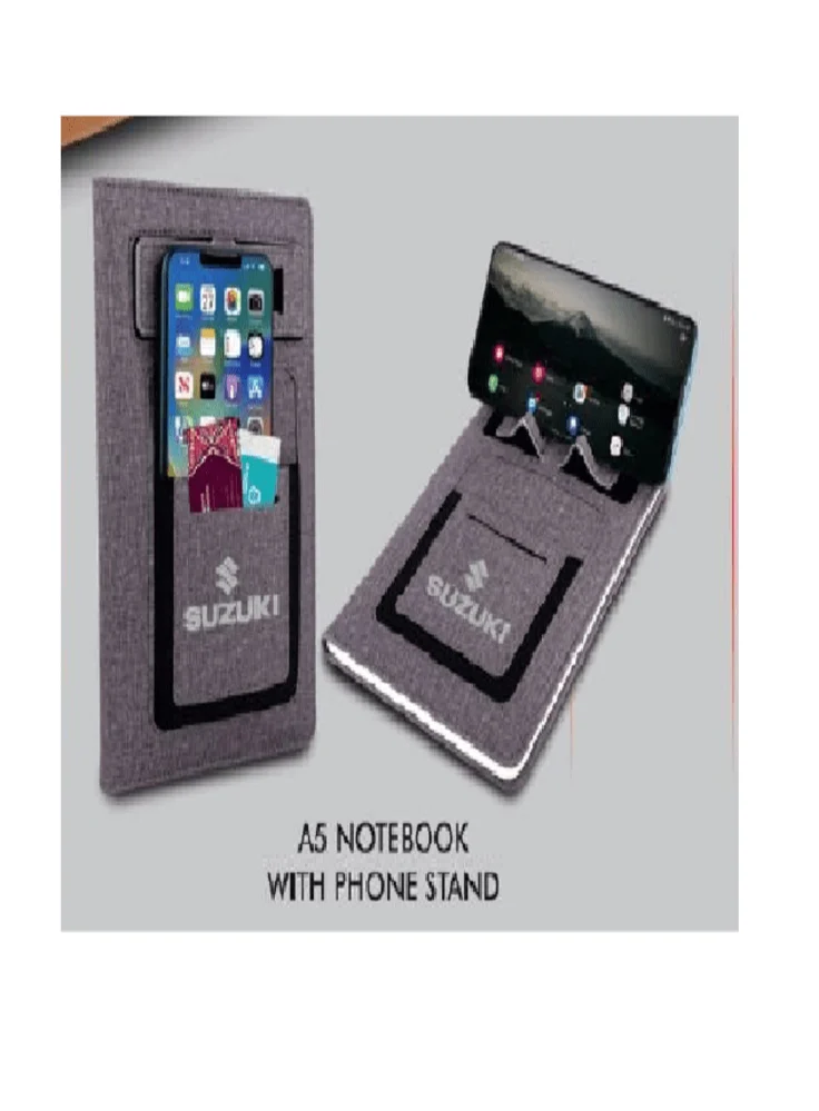 – A5 size premium look 4 in 1 PU notebook with mobile stand